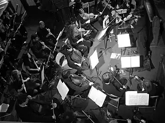 The Chelsea Symphony is an orchestra noted for its uniquely fluid hierarchy. Based in New York City, The Chelsea Symphony's members rotate as the ensemble’s own conductors, composers, and soloists. Each season, every conductor conducts a complete symphonic program with the group; each composer has a new work performed by the full orchestra; and every soloist performs a featured piece with the entire ensemble. The Chelsea Symphony gives most of its concerts at the German Church of St. Paul's.