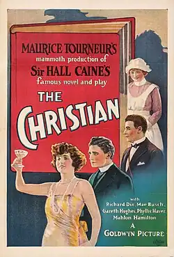 The Christian (1923) is a silent film drama, released by Goldwyn Pictures, directed by Maurice Tourneur, his first production for Goldwyn, and starring Richard Dix and Mae Busch.[2][3] The film is based on the novel The Christian by Hall Caine, published in 1897, the first British novel to reach the record of one million copies sold.[4] The novel was adapted for the stage, opening on Broadway at the Knickerbocker Theatre October 10, 1898.[5] This was the fourth film of the story; the first, The Christian (1911) was made in Australia.