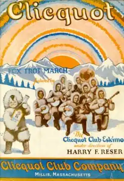 The Clicquot Club Eskimos was a popular musical variety radio show, first heard in 1923, featuring a banjo orchestra directed by Harry Reser. A popular ginger ale, Clicquot Club, was Canada Dry's main rival. Clicquot (pronounced "klee-ko") was the name of the Eskimo boy mascot depicted in advertisements and on the product.[1]