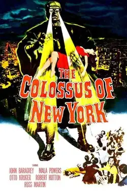 The Colossus of New York is a 1958 American science fiction film from Paramount Pictures, produced by William Alland, directed by Eugène Lourié, that stars Ross Martin, Otto Kruger, John Baragrey, Mala Powers, Robert Hutton, and Charles Herbert.[2] The screenplay was written by Thelma Schnee, the maiden name of Thelma Moss, who later became a famous parapsychologist.[3] The film's storyline is credited to Willis Goldbeck while John P. Fulton handled the special photographic effects, and Wally Westmore handled the makeup. Paramount Pictures theatrically released Colossus in June 1958 as a double feature with The Space Children.