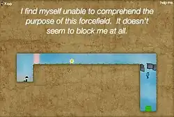 The Company of Myself is a 2009 Flash platformer by Eli Piilonen featuring a hermit as the protagonist whose depressed inner thoughts appears as writing on the "walls" of the game.[1] Piilonen has stated that the "core intent [of the game] is to be half puzzle game and half character study".[2] It has been frequently cited as an early example of an art game and has received praise for how it deals with issues of mental health.[3][4][5][6] Tom Fronczak of Destructoid called the game "brilliant".[1] It was included in Michael Rose's 2014 book 250 Indie Games You Must Play[7] and has been frequently cited in video games research.[8][9][10][11][12][13] Piilonen later released a prequel for the game called Fixation.[14]