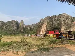 The film backdrop features landforms of Ban Mung, Thailand[14]