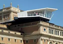 Two copies of The Cube were made, and they both tour Europe in a different city each year. During 2011, versions of the restaurant visited Milan and Brussels,[2] while in 2012 they are in London and Stockholm. The restaurant proved so popular in London that it was announced in September 2012 that the restaurant would stay in the city until 31 January 2013.[3] There are further plans for the restaurant to visit Switzerland and Russia.[4] In each city, the restaurant is placed on top of a monument; in Brussels it was on top of the triumphal arch at the Parc du Cinquantenaire,[5] in Milan by the Galleria Vittorio Emanuele II, in London it is located on top of the Southbank Centre.[3]