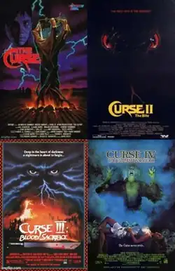 The Curse pentalogy is a horror series of five originally unconnected films that were retitled to be part of a supernatural franchise for the American home video market. The series started in 1987 with The Curse. 1993's Curse IV: The Ultimate Sacrifice is notable due to the fact the fourth film was originally made in 1988, predating the third film Curse III: Blood Sacrifice which was released in 1991. The only loose connections between the films are the first two are Italian productions produced by Ovidio G. Assonitis, otherwise the films are completely unrelated.