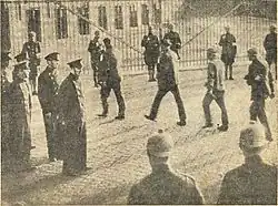 ![]() Streikbrecher going to his workplace (scene from the film) | |