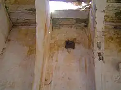 The building has a simple and modest vernacular architecture,[11] with slit windows, that function as ventilators, and waterspouts. It has no inscriptions or symbols to shed further information about its use apart from Roman numerals that were inscribed when it was converted to a farmhouse. These are found on the walls and woods, and record the sale of different types of vegetables by farmers.[5] The features of the building are examples of Maltese traditional architecture that include roofs built with limestone slabs and animal feeding mangers. Despite the conversion to a farmhouse, the building clearly does not look like it was originally meant to be one, as it is not a traditional Maltese farmhouse.[5] This and the position of the mangers prove that the building was built for horses. These characteristics may suggest that the building may have been a cow farm. The high roof of one of the buildings still prove that it is unlikely it was originally a cow farm, but it may be speculative to say that at one point it had been so.[5][6][8]