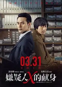 The Devotion of Suspect X (Chinese: 嫌疑人X的献身; pinyin: Xiányírén X de Xiànshēn) is a 2017 mystery thriller film based on the novel The Devotion of Suspect X, written by Keigo Higashino. The film is second film directed by Alec Su, and stars Wang Kai, Zhang Luyi, and Ruby Lin. The film was released in China and in North America on March 31, 2017.[1][2]