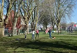 Community amenities include Dings Park (home to the Safe 'Ouse), the Grade II listed Congregational Chapel on Kingsland Road (now containing small commercial units), and a cluster of cafés and businesses on and around Silverthorne Lane.[13]
