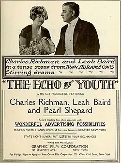 The Echo of Youth is a lost[2] 1919 American silent drama film written and directed by Ivan Abramson, and featuring Charles Richman, Leah Baird, Pearl Shepard, and Marie Shotwell.