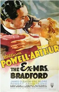 The Ex-Mrs. Bradford is a 1936 American comedy mystery film. William Powell and Jean Arthur star as a divorced couple who investigate a murder at a racetrack. This was the last film directed by Stephen Roberts before his death from a heart attack.