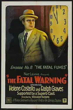 The Fatal Warning is a 1929 mystery silent film serial directed by Richard Thorpe for Mascot. The film is considered to be a lost film, with no prints known to exist.[1] It co-starred Boris Karloff.[1]