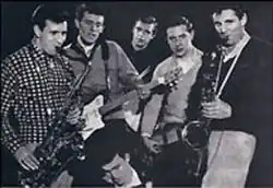 They were spotted playing at a The Hive Jive, The Putney Ballroom in Putney, South West London in late 1959, and successfully auditioned for record producer Joe Meek.[6] He produced their first single, "Green Jeans", a rocked-up version of the traditional "Greensleeves" released on Meek's own label, Triumph Records, in early 1960. The record reached No. 23 on the UK Singles Chart,[7] but demand outstripped Meek's capacity to supply copies. After the Triumph label collapsed, the record was reissued on the Top Rank label, which itself was then taken over by EMI.[5][6][8] The group also featured on a single, "Hot Chick-A-Roo", by singer Ricky Wayne (born Learie Carasco), who became a prominent bodybuilder and, later, a noted writer and broadcaster in Saint Lucia.[8][9]