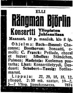 Elli Rängman-Björlin was the pianist; she also later played the suite in Germany.