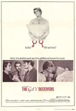 The Gay Deceivers is a 1969 American comedy film written by Jerome Wish and directed by Bruce Kessler. The film focuses on Danny Devlin (Kevin Coughlin) and Elliot Crane (Lawrence P. Casey), two straight men who attempt to evade the draft by pretending to be gay men.