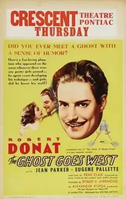 The Ghost Goes West is a 1935 British romantic comedy/fantasy film directed by René Clair and starring Robert Donat, Jean Parker, and Eugene Pallette.[2] It was Clair's first English-language film. The story concerns an Old World ghost dealing with American materialism.