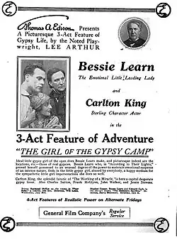The Girl of the Gypsy Camp, from Edison Studios, is a three-act silent film written by Lee Arthur and directed by Langdon West. The film was released on July 30, 1915.[1]
