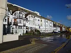 The Granville Marina is a street in Ramsgate, Kent. It was originally a parade of small shops, tea rooms and houses built in 1877 in the Old English style. The site is reached by Marina Road from Victoria Parade. The Marina formed part of the Granville Hotel, Ramsgate complex planned by Edmund Francis Davis. The buildings also included a large hall on the western end Marina Hall - since demolished. The buildings are partly built into the chalk cliffs below the former hotel.