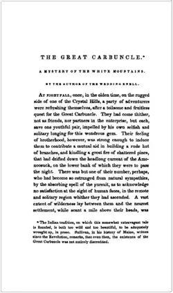 "The Great Carbuncle" is a short story by Nathaniel Hawthorne. It first appeared in December 1835 before being included in the collection Twice-Told Tales in 1837.