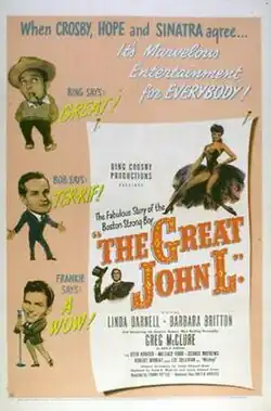 The Great John L. is a 1945 American biographical drama film directed by Frank Tuttle and written by James Edward Grant. The film stars Linda Darnell, Barbara Britton, Greg McClure, Otto Kruger, Wallace Ford and George Mathews. The film was released on May 25, 1945, by United Artists.[2][3]