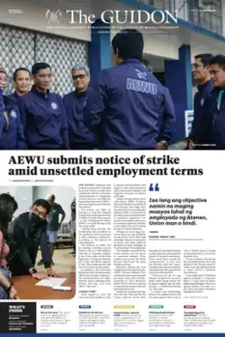 The Guidon (stylized as The GUIDON) is the official student newspaper of Ateneo de Manila University. Published monthly between August and March, The GUIDON is a member of the Ateneo's Confederation of Publications and is one of the founding members of the College Editors Guild of the Philippines,[1] along with The Varsitarian of the University of Santo Tomas, The Philippine Collegian of the University of the Philippines Diliman, and The National of National University (Philippines).[2] As of 2024, The GUIDON is in its 96th year, with its editor-in-chief being Azra Samanta R. Cagsawa, its associate editor being Nicole Anne Kelsy L. Sy, its managing editor being Qichsia Brea Paladin, and its design executive editor being Anthea Maria B. Rey.[3]