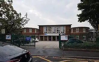 As the 'Hathershaw Technical High School', it opened in 1955; it had a selective intake. The school was housed in three blocks (a main building, a science block and a craft/engineering block). The school was sponsored by the aviation manufacturer Avro, and the ground plan of the main building was inspired by the outline of a Lancaster bomber.[1] It competed for intake with Oldham's state grammar schools, but offered a more technical syllabus. Provision of equipment and machinery for metalwork and woodwork was considered to be amongst the finest available nationally.[2]