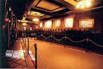 The Haunted Mansion was an opening-day attraction at Magic Kingdom in Walt Disney World, where it is part of Liberty Square. During the production and assembly of the props and audio-animatronics for Disneyland's Haunted Mansion, duplicates of everything were being made for Walt Disney World's Haunted Mansion. It was decided that the Florida version of the attraction would be slightly longer and more elaborate than its California counterpart with extra scenes such as the library and the music room. Paul Frees recorded additional voice-overs, including the "Ghost Host" to accompany the extra scenes in the ride.[2] Because of the ample space within the park, the attraction's show building is much larger and not restricted by any railroad berm.