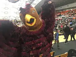 The idea for a Saint Joseph's mascot costumer came from Jim Brennan, a sophomore at the university in 1955, who was inspired by the Princeton tiger.[2] He originally attempted to acquire a live hawk, before pivoting to a hawk costume.[6] Brennan raised $80 from the student body and received an additional $40 from the university to purchase a hawk costume from a local shop.[4] The mascot debuted on December 3, 1955, in a win against Rhode Island.[6] Brennan later said, "When I was in costume, I didn't want to be just a fan watching the game. So I started flapping."[4] He remained the Hawk for the duration of his time at Saint Joseph's, and other students continued the tradition once he graduated. As of 2024, over 60 students have worn the Hawk costume.[2]