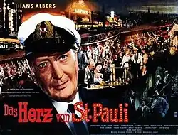The Heart of St. Pauli (German: Das Herz von St. Pauli) is a 1957 West German musical film directed by Eugen York and starring Hans Albers, Hansjörg Felmy and Jürgen Wilke. The film is set in the St. Pauli district of Hamburg and was an attempt to capitalise on the success of Albers’ earlier starring role in Große Freiheit Nr. 7.[1] It was made by the Hamburg-based studio Real Film and shot at the Wandsbek Studios and on location in the city. The film's sets were designed by the art directors Mathias Matthies and Ellen Schmidt.
