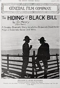 The Hiding of Black Bill is a 1918 American silent short film directed by David Smith, distributed by General Film Company. It is based on a story by O. Henry.[1] It is currently classified as a lost film.