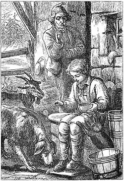 He has fallen in love with the miller's daughter, Babette; however, the miller does not approve of the union and gives Rudy the impossible task of climbing to the top of a dangerous mountain and bringing back a live baby eaglet. While Babette was off visiting her godmother, she caught the attention of her cousin and flirted with him, which reveals in Rudy a growing jealousy.[4] When Rudy finds the cousin climbing up a tree into Babette's window, Babette is enraged that Rudy is yelling at her cousin and tells him to leave.