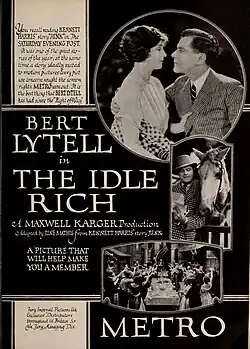 The Idle Rich is a 1921 American silent comedy film directed by Maxwell Karger. The film stars Bert Lytell, Virginia Valli, and John Davidson. It was released on December 26, 1921, by Metro Pictures. It is not known whether this film survives.[2]
