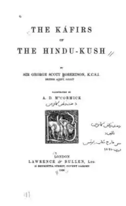 The Kafirs of the Hindu Kush is a book written by Sir George Scott Robertson, illustrated by Arthur David McCormick, and published in 1896 by Lawrence & Bullen Ltd.[1]