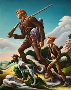 The Kentuckian is a 1954 painting by American artist Thomas Hart Benton. It is based on a scene from the film The Kentuckian, where the backwoodsman Big Eli Wakefield (played by Burt Lancaster) and his son Little Eli (played by Donald MacDonald) encounter a frontier village. The painting belongs to the Los Angeles County Museum of Art.