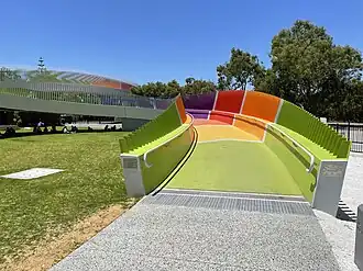11. ^ McGowan, Mark; Cook, Roger; Saffioti, Rita; Dawson, Stephen (14 January 2021). "Construction of rainbow Perth Kids' Bridge now underway" (Media Statement). Government of Western Australia. Retrieved 10 August 2021.