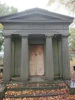 Imre Kiralfy’s The Fall of Rome was produced on Staten Island with 2,000 performers, a grand number at the time. In 1892, to mark the 400th anniversary of Columbus' "founding" of America, he produced Columbus and the Discovery of America at the Madison Square Garden Theatre. It was later featured at the Auditorium Theatre at the Chicago World’s Columbian Exposition. Imre Kiralfy also premiered his show America at the Chicago World’s Fair which was picked up by the Metropolitan Opera House in 1893. Life magazine in quoted as response to the production “Kiralfy out-Kiralfy’s himself”[35] Imre Kiralfy then moved to England where he created even larger spectacles.[36] The twenty-four acre Earl's Court Exhibition Centre grounds were rebuilt in 1894 by Imre Kiralfy in a Mughal Indian style. The Empire of India Exhibition opened the site in 1895, and was the first of a series of annual exhibitions there, which drew heavily on the abundance of transport links in the area to attract a mass audience. Highlights of the site included the two-storey Empress Hall, built for Kiralfy in Fulham which could seat 6,000 viewers for his spectaculars, and the 300-feet high Great Wheel whose forty carriages could each accommodate thirty people.[37][38] Imre Kiralfy became a British citizen in 1901.[39] The renowned producer died on April 27, 1919, at age 74 in Brighton, England.[40] He is buried in the family mausoleum in Green-Wood Cemetery, New York, but there is also family mausoleum at Kensal Green Cemetery in London.