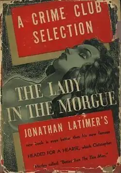 The Lady in the Morgue (1936) is one of the novels by Jonathan Latimer featuring private detective William Crane. The lady of the title is a female corpse which is stolen from a Chicago morgue before the dead woman's identity can be established.