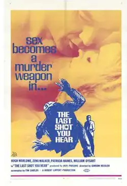 The Last Shot You Hear is a 1969 British thriller film directed by Gordon Hessler and starring Hugh Marlowe, Zena Walker, Patricia Haines, and William Dysart.[1] The screenplay was by Tim Shields based on William Fairchild's 1959 play The Sound of Murder.