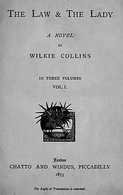 The Law and the Lady is a detective story, and sensation novel published in 1875 by Wilkie Collins. It is not quite as sensational in style as The Moonstone and The Woman in White.