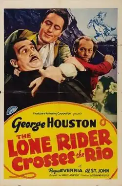The Lone Rider Crosses the Rio is a 1941 American Western film directed by Sam Newfield and written by William Lively. The film stars George Houston as the Lone Rider and Al St. John as his sidekick "Fuzzy" Jones, with Roquell Verria, Charles King, Julian Rivero and Stephen Chase. The film was released on February 28, 1941, by Producers Releasing Corporation.[1][2][3]
