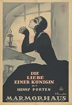 The Love of a Queen (German: Die Liebe einer Königin) is a 1923 German silent historical drama film directed by Ludwig Wolff and starring Harry Liedtke, Henny Porten and Walter Janssen.[1] It is based on the eighteenth century affair between the Danish Queen Caroline Matilda and the court physician Johann Friedrich Struensee.