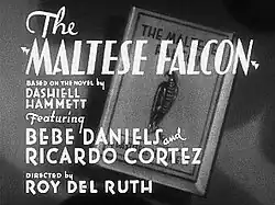 The Maltese Falcon is a 1931 American pre-Code crime film based on the 1930 novel The Maltese Falcon by Dashiell Hammett and directed by Roy Del Ruth. The film stars Ricardo Cortez as private detective Sam Spade and Bebe Daniels as femme fatale Ruth Wonderly. The supporting cast features Dudley Digges, Thelma Todd, Walter Long, Una Merkel, and Dwight Frye.[3] Maude Fulton and Brown Holmes wrote the screenplay; one contemporaneous report said that Lucien Hubbard was assisting them.[1]