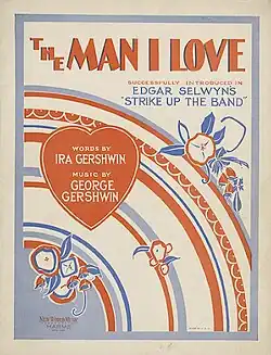 "The Man I Love" is a popular standard with music by George Gershwin and lyrics by his brother Ira Gershwin. Part of the 1924 score for the Gershwin musical comedy Lady, Be Good, the song was deleted from that show and put into the Gershwins' 1927 government satire Strike Up the Band (where it appears as "The Man I Love" and "The Girl I Love"), which closed out-of-town. It was considered for, then rejected from, the 1928 Florenz Ziegfeld Jr. hit Rosalie.[2]