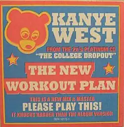 "The New Workout Plan" is a song from Kanye West's debut album, The College Dropout. Released as the album's fifth single on August 31, 2004, it peaked at number 59 on the Hot R&B/Hip-Hop Songs chart. The song was written and produced by West, with additional songwriting from John Legend, Miri Ben-Ari, Sumeke Rainey, and Bosko Kante. The music video was released the same year, with cameos from Legend, Ben-Ari, Anna Nicole Smith, Fonzworth Bentley, Tracee Ellis Ross, Vida Guerra and GLC.