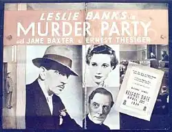 The Night of the Party is a 1934 British mystery thriller film directed by Michael Powell and starring Leslie Banks, Ian Hunter, Jane Baxter, Ernest Thesiger and Malcolm Keen. In the United States it was released as The Murder Party.[1][2] It was made at the Lime Grove Studios in Shepherd's Bush. The art direction was by Alfred Junge, later a regular contributor to the films of Powell and Pressburger.[3]