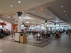 In 2002, the Oaks Mall underwent a major six-month expansion. The renovations raised the food court's size to 18,000 square feet, increased the number of restaurants, and expanded its dining area to include 650 seats with dedicated tables for children and disabled people. The renovations also converted the mall's former AMC movie theater into several retail spaces, replaced its small indoor amphitheatre with a children's play area, and improved the restrooms.[14][15]