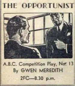 The Opportunist is a 1940 Australian radio play by Gwen Meredith.[1][2]