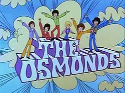 The Osmonds is a 1972 ABC-TV Saturday morning cartoon series produced by Rankin/Bass Productions starring the Osmond Brothers.[1] Each episode features the family in a different location around the world, with young Jimmy's antics usually driving the plot of the episode. As with most television series oriented around bands, the Osmonds' songs were featured prominently in the series. The series also featured their talking pet dog, Fuji.[2] Marie Osmond did not appear in the series (save for being briefly depicted in "Transylvania,") as she would not make her performing debut until 1973. An abridged version of their hit song "One Bad Apple" was used for the opening and closing credits of the show.