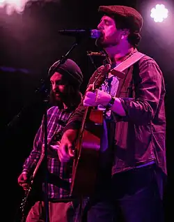 Paul Mirfin had been playing on the pub gig scene in Harrogate for five years, playing solo and with folk groups such as Echo the Woods.[5] In 2015 he began writing his own songs and contacted the church he attended to recruit musicians to form the first Paul Mirfin Band line up. Dom Cottrill (cajon, drums, vocals) and Daniel Jackman (violin, vocals) joined Mirfin in March 2015 and by October the group had a 60-minute set of original songs by Mirfin as well as covers of country and gospel classics including Come to the River by Rhett Walker, This I Know by David Crowder and I Saw the Light by Hank Williams. The three had very different musical backgrounds and their sound was informed by Cottrill's rock drumming experience, Jackman's classical music training and Mirfin's previous involvement in the country and folk scene. The band gigged on railway platforms across the north of England as Mirfin continued his career with Northern Rail resulting in the local press naming him 'The Singing Train Conductor'.[6][7] The trio also played at a series of events in local cafes called 'The Oaks'. These twilight gigs were born out of an idea by Mirfin to make live music accessible to families outside of a pub environment. At one of these events BBC journalist Rachel Williams spotted the band and put them forward for a special railway themed episode of Songs of Praise[2] also featuring R&B and soul singer Ruby Turner and classical singer Katherine Jenkins. Shortly after this in May 2016 the band released their first EP 'Bring the Rain'[8] recorded live at Homefire Studios Harrogate on an independent label. The songs on this EP were inspired by collisions in life and relationships following a turbulent few years in Mirfin's life. Underlying themes in many of the songs are those of love and hope, influenced by testimonies of Mirfin's Christian faith. The EP was followed by a single released in November 2017 called 'The Fighter'[9] "with its memorable Trinitarian lines, "Well, there's one of you/And there's three of me/Come on and fight."[10]