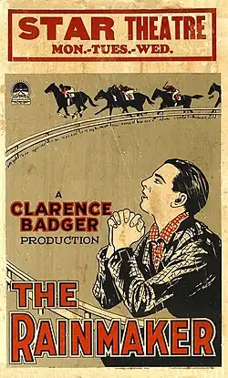 3. ^ "New Pictures: The Rainmaker". Exhibitors Herald. 25 (2). Chicago: Exhibitors Herald Co.: 62 March 27, 1926. Retrieved April 18, 2023. Public Domain This article incorporates text from this source, which is in the public domain.