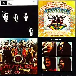 The original 1978 vinyl release of the soundtrack omitted some of the material. The design of the record's inner sleeve reflected the Apple/EMI 1962–1966 ("Red") and 1967–1970 ("Blue") compilation Beatles albums released in 1973, with printed lyrics, red, blue and white layouts, and the track listing for the two album sides using similar periods (side one: 1962–67, side two: 1967–70). A humorous sticker on the shrinkwrap of the original LP release touted a “FREE RECORD WITH THIS 20-PAGE BOOK”.